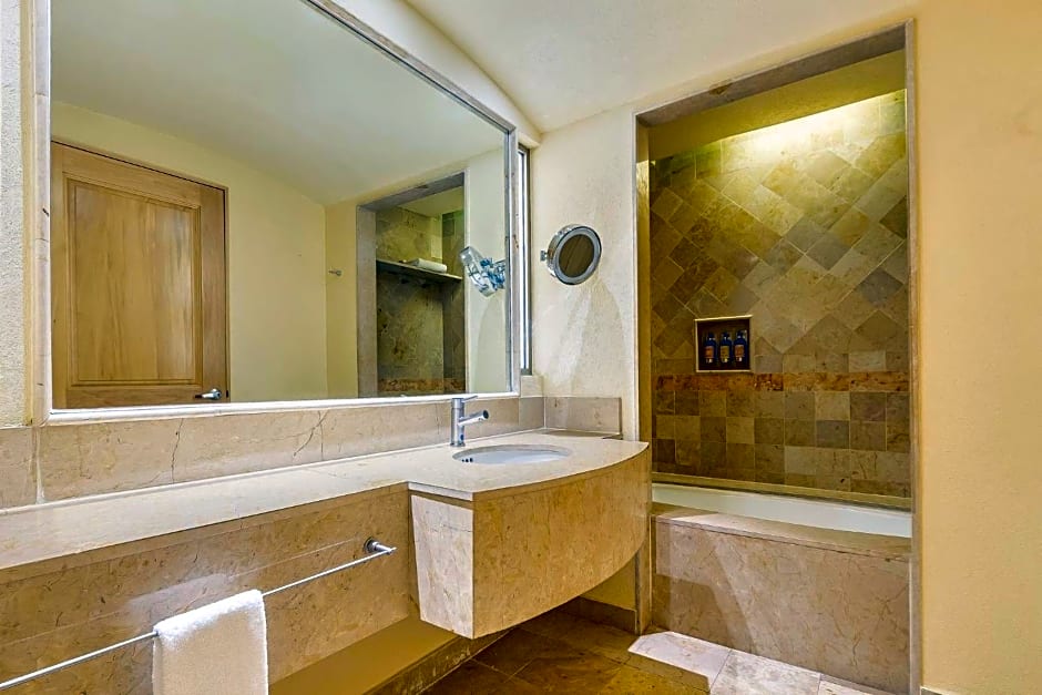 The rooms at Grand Fiesta Americana are spacious and stylish, featuring ocean views, kitchenettes, and private balconies. Enjoy the 24-hour room service, dine in the on-site restaurant, or unwind on the sun deck. Whether you're looking for relaxation or adventure, this resort has it all. Book your stay today and experience the ultimate vacation at the Grand Fiesta Americana Los Cabos All Inclusive Golf & Spa.